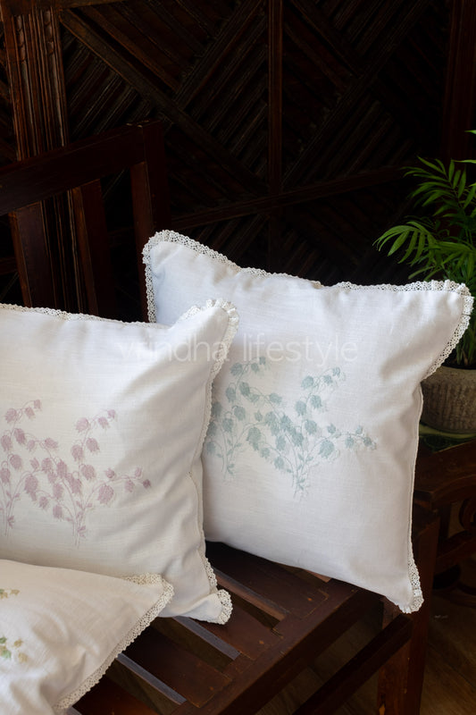 cotton cushion cover with embroidery and lace detailing -Single unit- 16x16 inches( Customisable)
