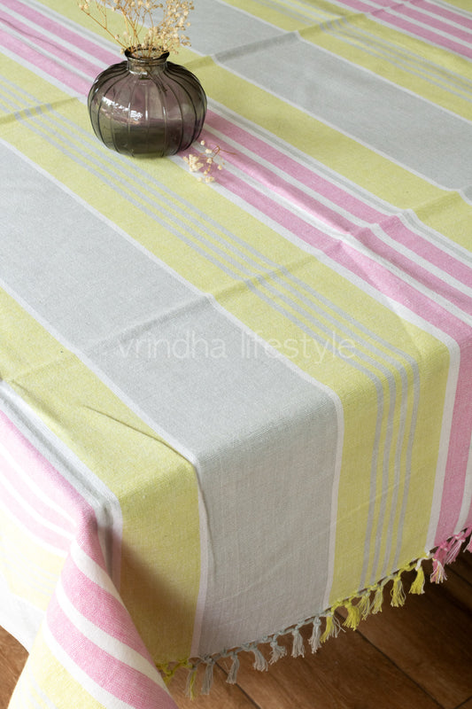 STRIPES COTTON TABLE CLOTH with tassels-4 seater