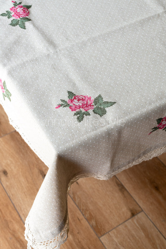 Table cloth with embroidery and lace detailing -Round-4 /6 seater