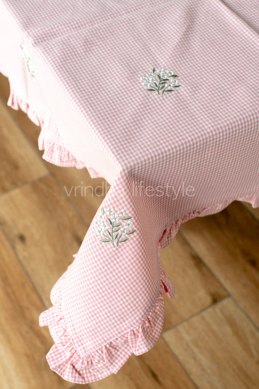 TABLE CLOTH with embroidery and frill detailing-Square -coffee table cover-customisable