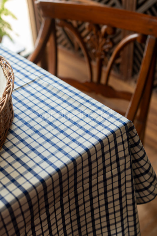 Woven checks table cloth with lace detailing -4/6 seater-customisable