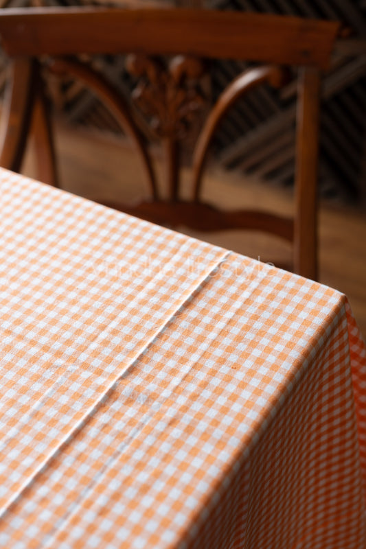 Woven checks table cloth with lace detailing -6 seater-customisable