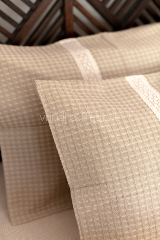 Woven cotton checks bed sheet and cotton pillow cover with lace detailing -Single|Kids Collection