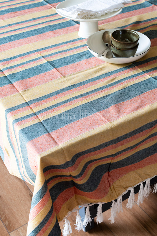 WOVEN STRIPES TABLE CLOTH with tassels-8 seater