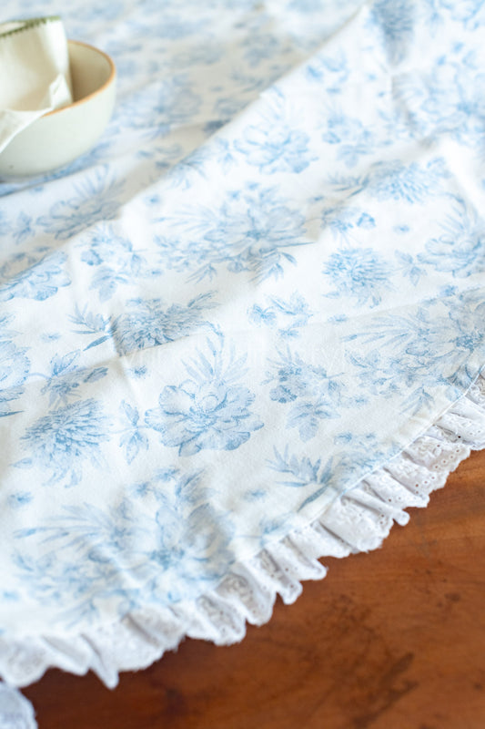 Table cloth with cotton lace frill -Round-4 /6 seater