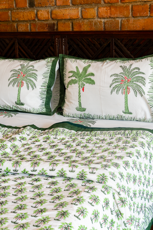 TROPICAL PARADISE-Premium hand block printed bedding set-Queen size