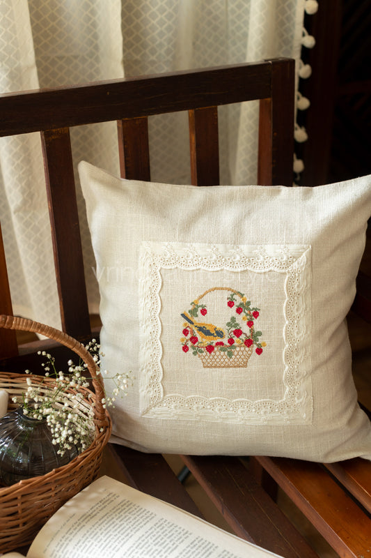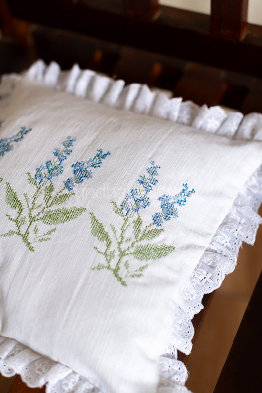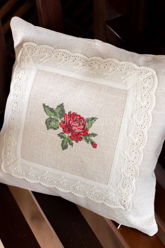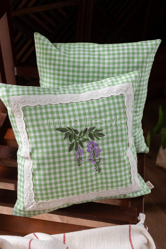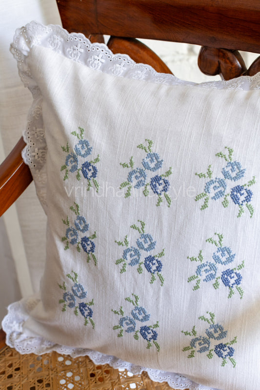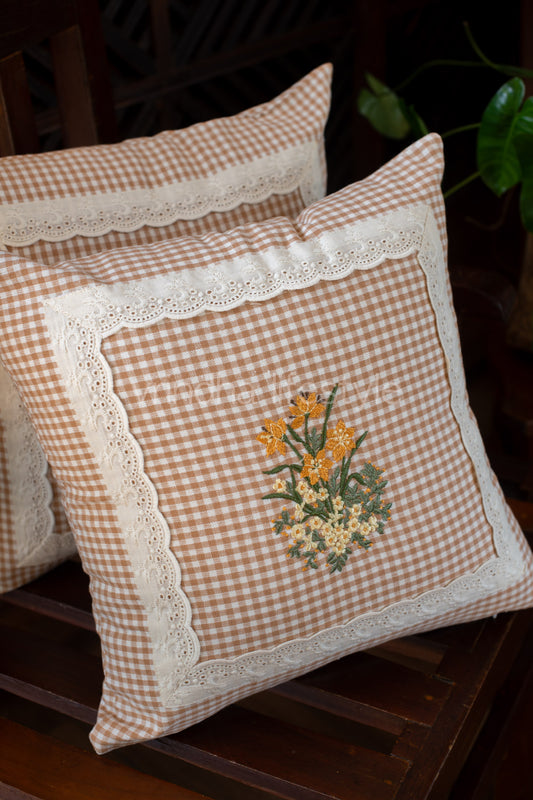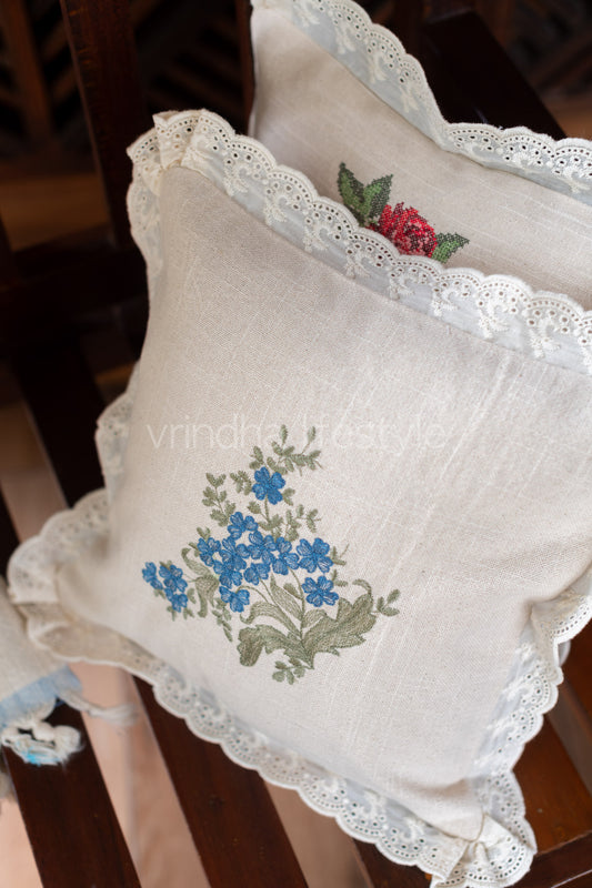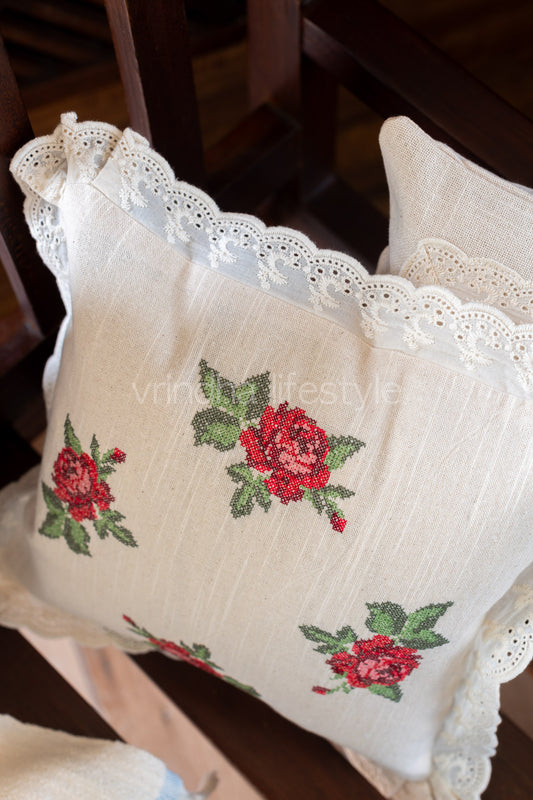 Cotton cushion cover with embroidery and lace detailing -Single unit- 16x16 inches( Customisable)