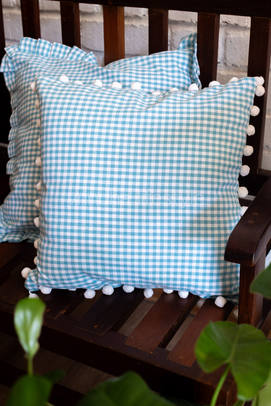 CHECKS -CUSHION COVERS with pompom-Single Unit