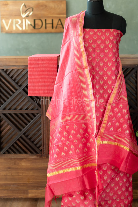 Chanderi cotton ,hand block print salwar material
