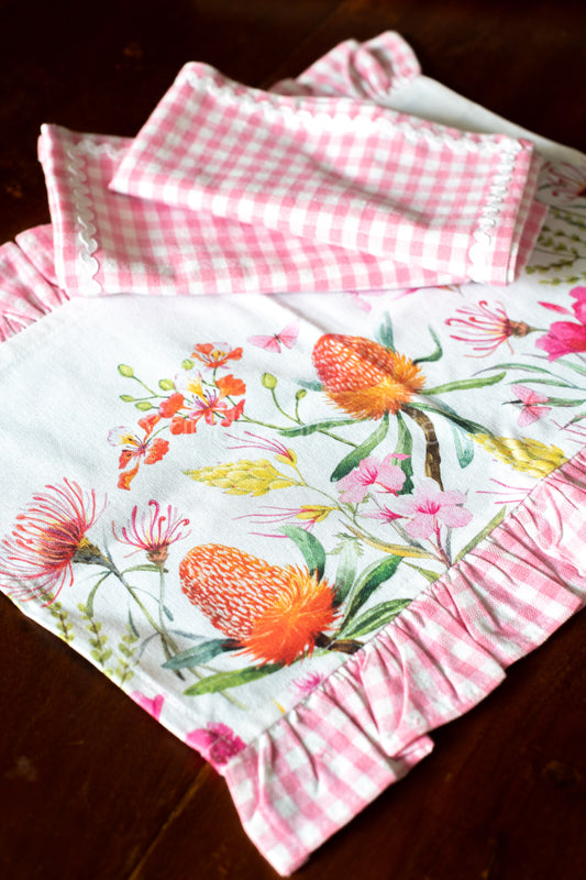 Cotton plaid tray mat with lace detailing-customisable-Set of 2