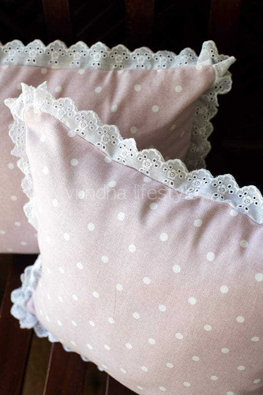 Cotton Polka dot cushion covers with lace detailing-Single Unit