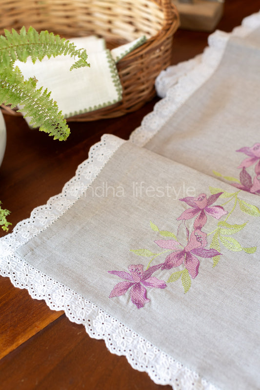 Cotton runner with embroidery and lace detailing- 14x24 inches-customisable