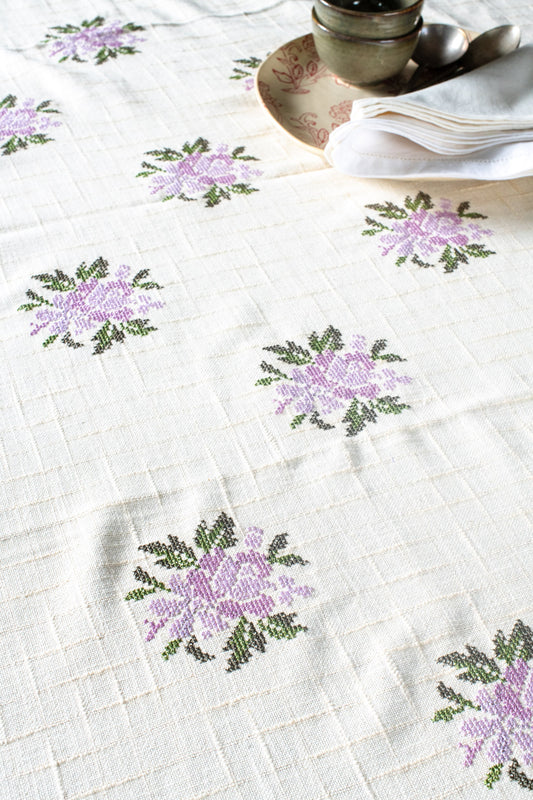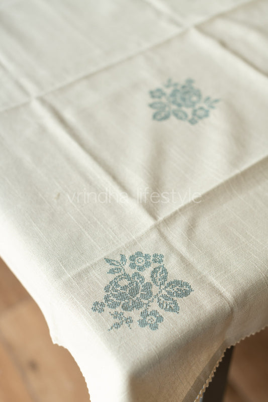 COTTON TABLE CLOTH with cross stitch embroidery -4 seater