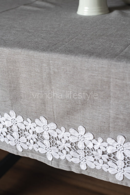 Cotton table cloth with embroidery and lace detailing -6 seater
