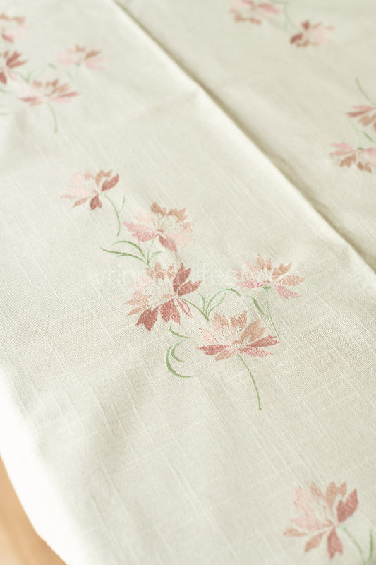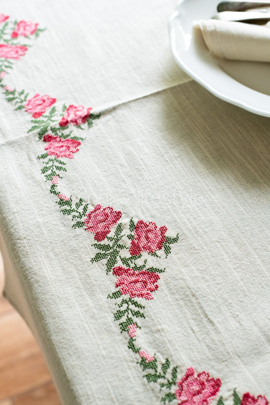 COTTON TABLE CLOTH with floral cross stitch embroidery -8/6 seater