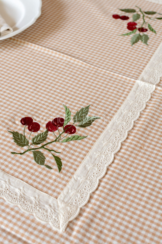 COTTON TABLE CLOTH, checks with embroidery lace detailing -6 seater-customisable