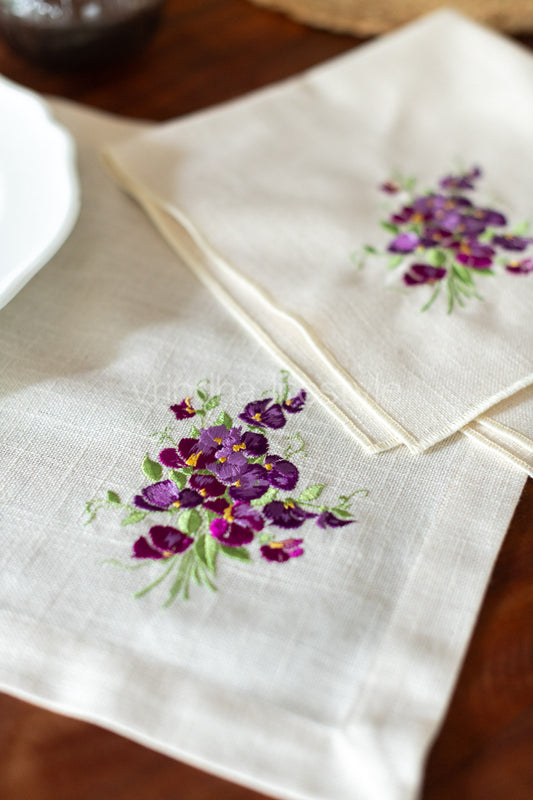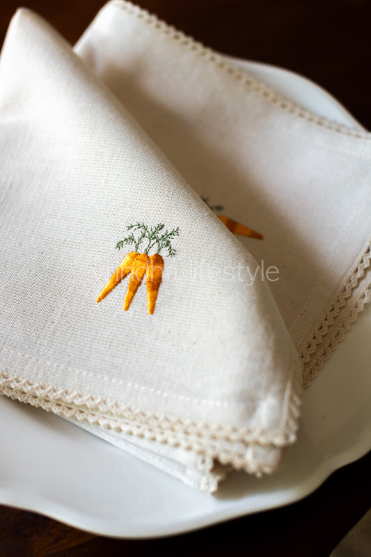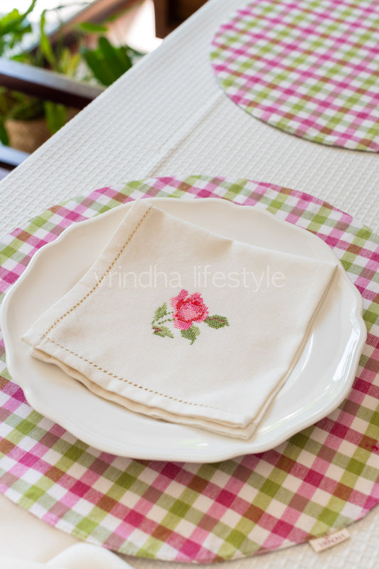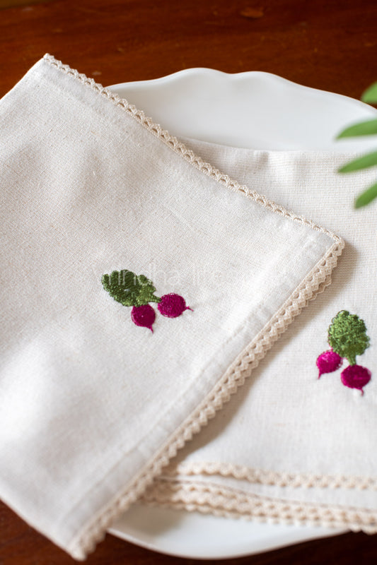 COTTON TABLE NAPKINS with hand embroidery -Set of 2