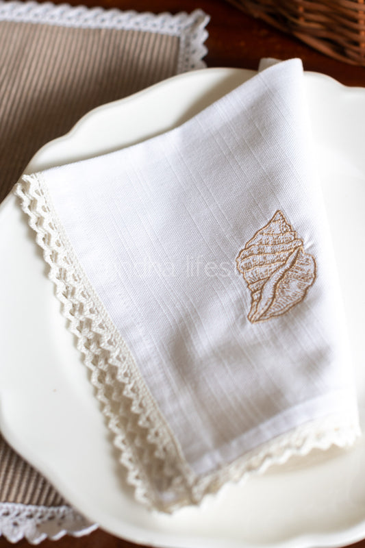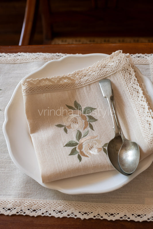 COTTON TABLE NAPKINS with embroidery and lace detailing -Set of 2
