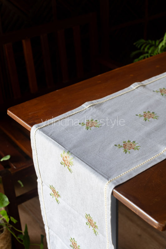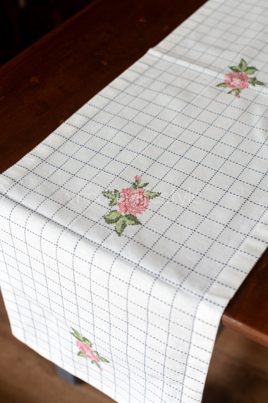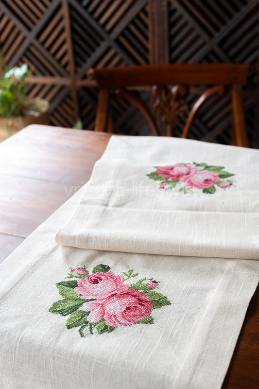 Cotton table runner with cross stitch embroidery-8 seater 104x14- inches-customisable