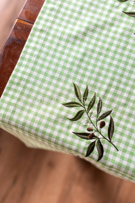 Cotton table runner with embroidery ,green checks- 14x54 inches-customisable