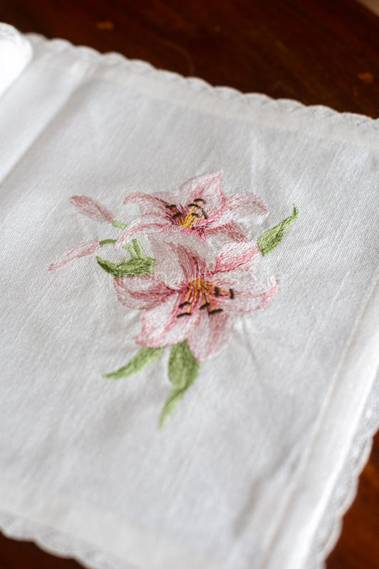 Cotton table runner with embroidery and lace detailing- 13x52 inches-customisable