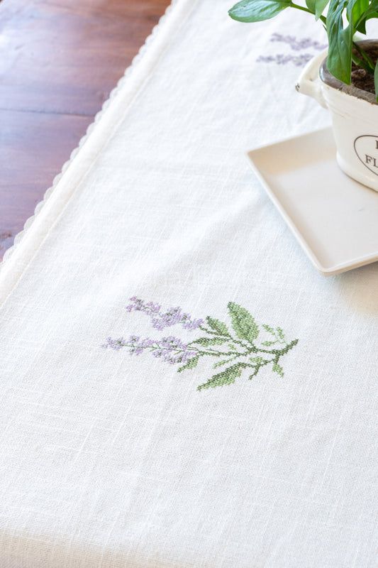Cotton table runner with embroidery - 17x45 inches-customisable