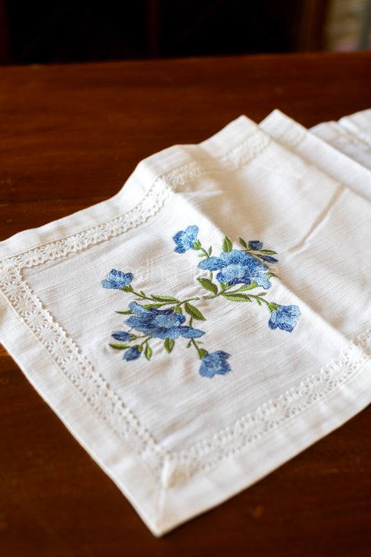 Cotton table runner with floral embroidery and lace detailing -4 seater -12.5x40 inches-customisable