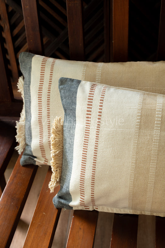 HANDLOOM COTTON CUSHION COVER WITH TASSELS-16 x 16 inches(Single unit)