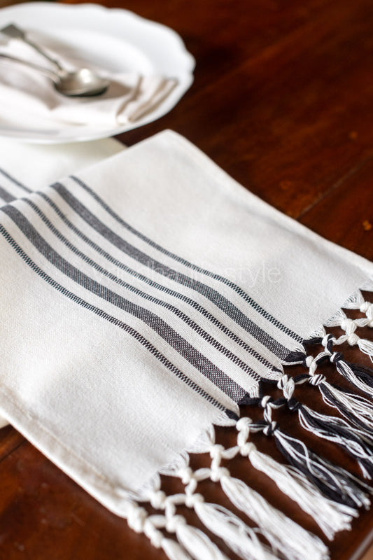 Handloom cotton stripes table runner with tassels-12x72-customisable
