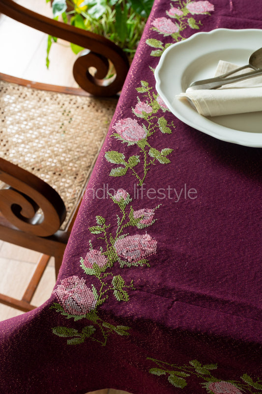 PREMIUM COTTON LUREX TABLE CLOTH with floral cross stitch embroidery -8seater