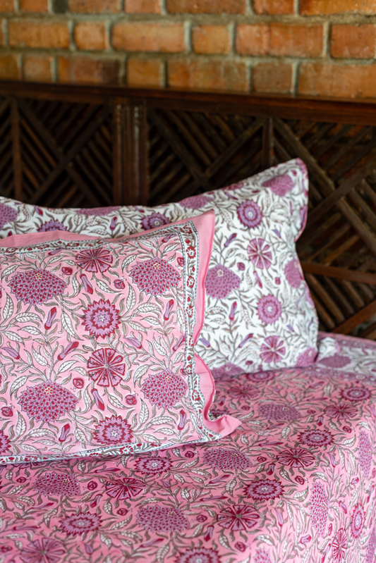 PREMIUM COTTON PERCALE BLOCK PRINTED BEDSHEET SET-Queen size