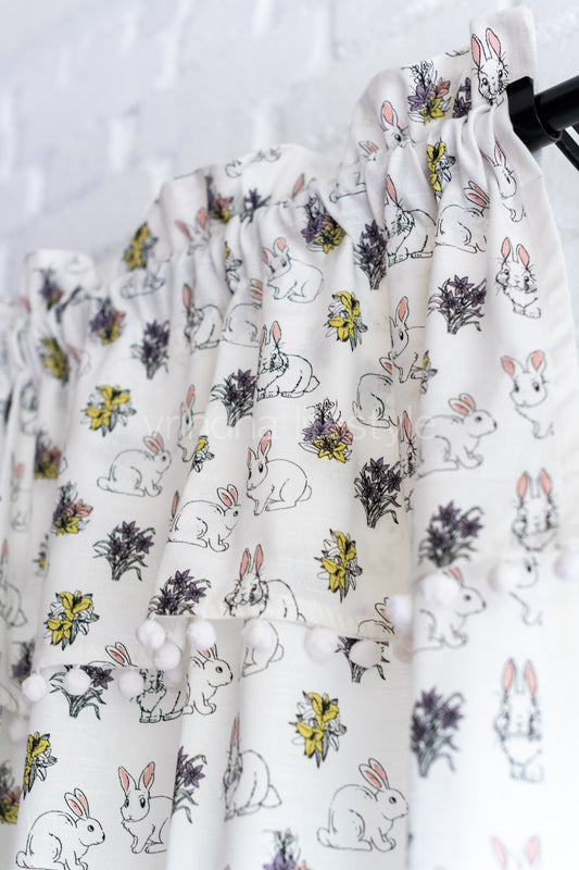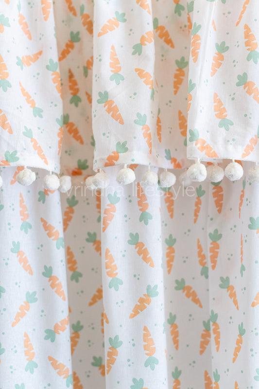 PRINTED COTTON CURTAIN with pompom-Rod pocket curtain -7.5 Feet-Single unit-(customisable )KIDS COLLECTION