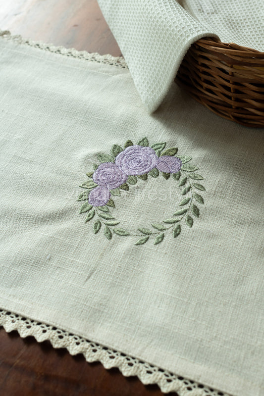 Cotton coffeetable runner with embroidery and lace detailing- 13x30inches