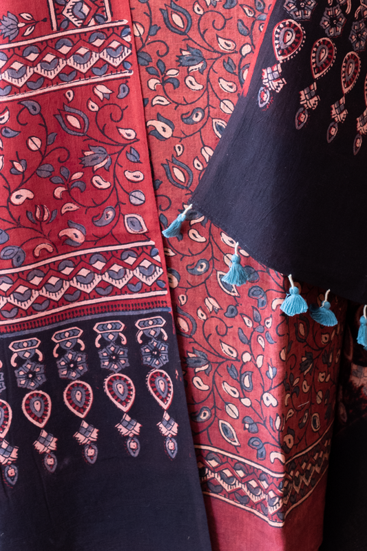 PURE LINEN ,NATURAL AJRAK PRINT TOP WITH COTTON DUPATTA(2 pcs set)