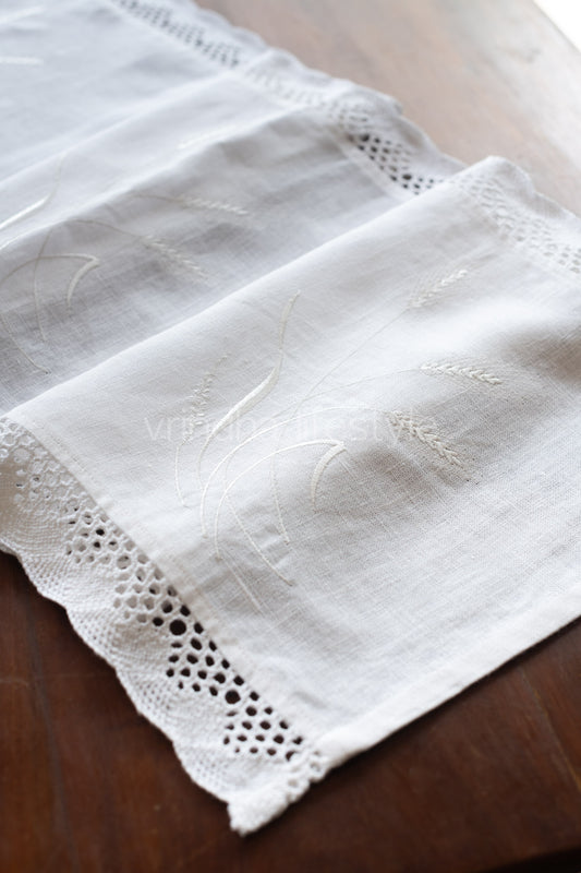 Pure Linen table runner with embroidery and lace detailing 15x52 inches-customisable