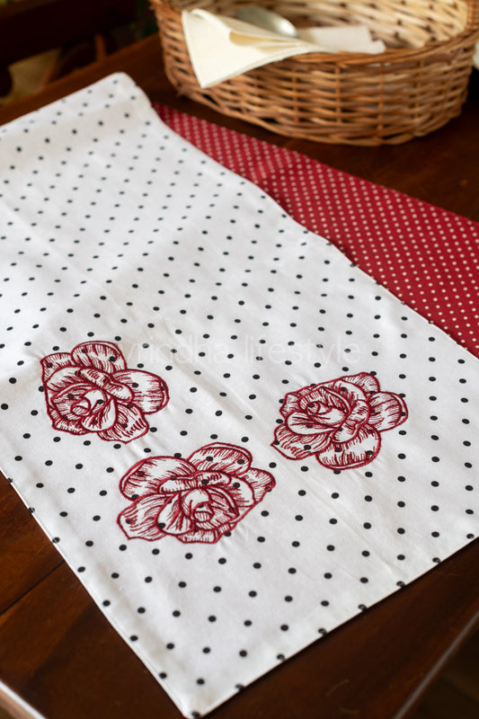 Reversible cotton table runner with embroidery -12.5x54 inches