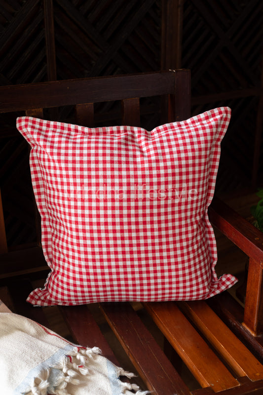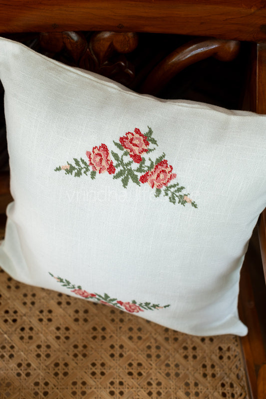 Cotton cushion cover with cross stitch embroidery and lace detailing-Single unit- 16x16 inches( Customisable)