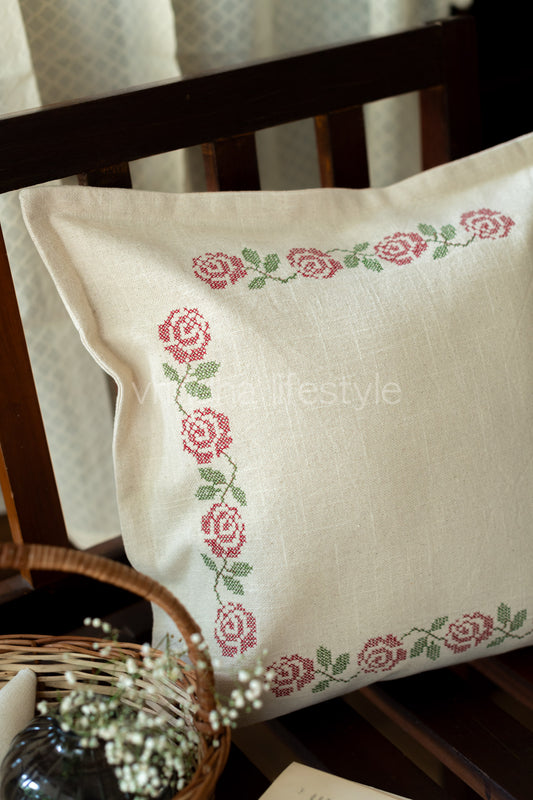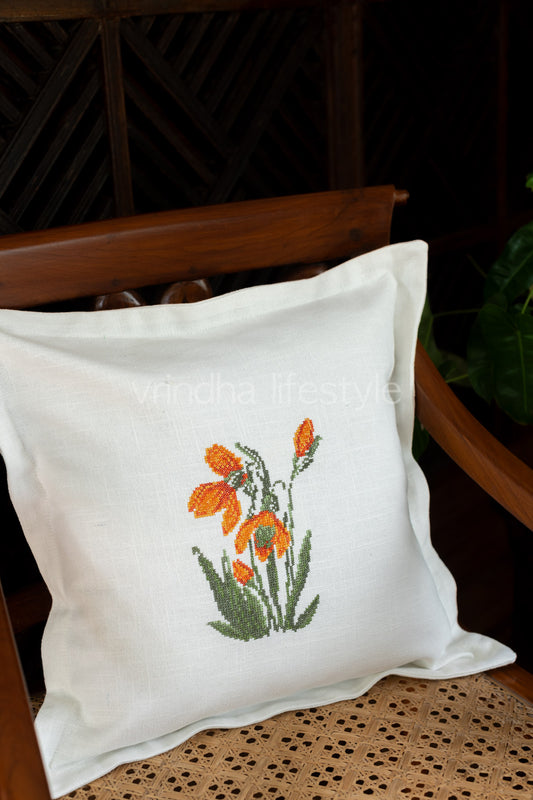Cotton cushion cover with cross stitch embroidery,-Single unit- 16x16 inches( Customisable)