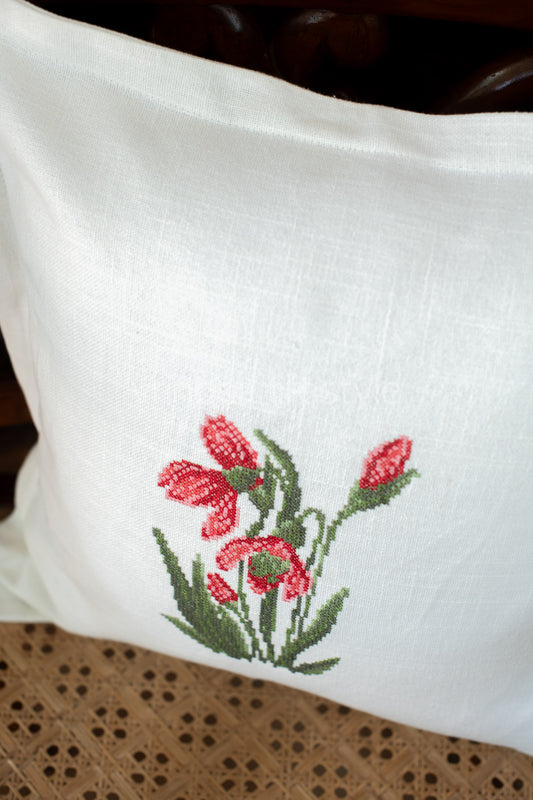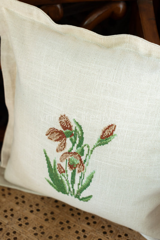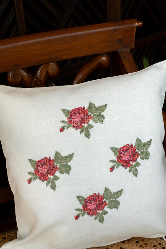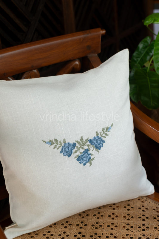 Cotton cushion cover with cross stitch embroidery -Single unit- 16x16 inches( Customisable)