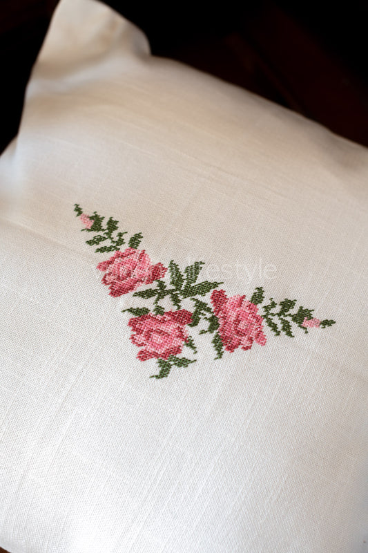 Cotton cushion cover with cross stitch embroidery and lace detailing -Single unit- 12x12 inches( Customisable)