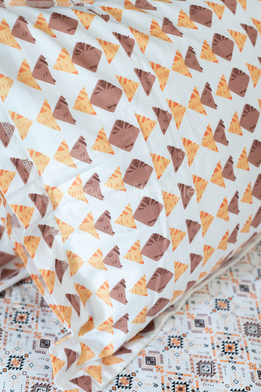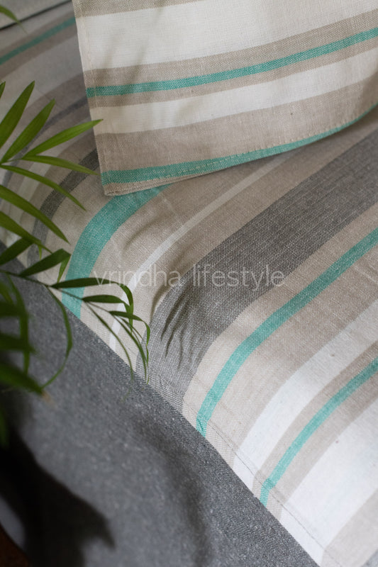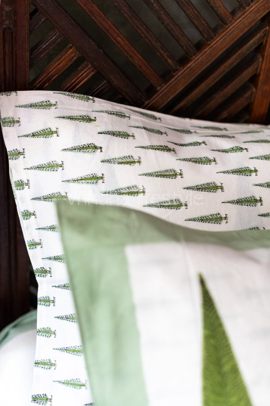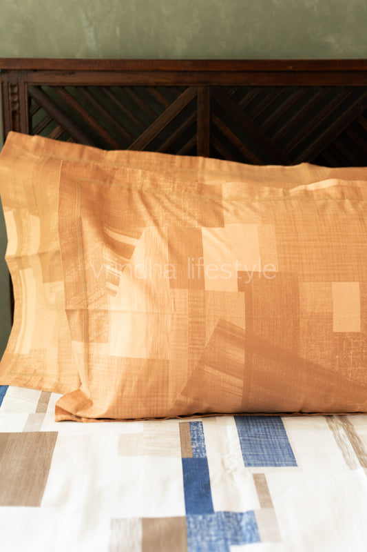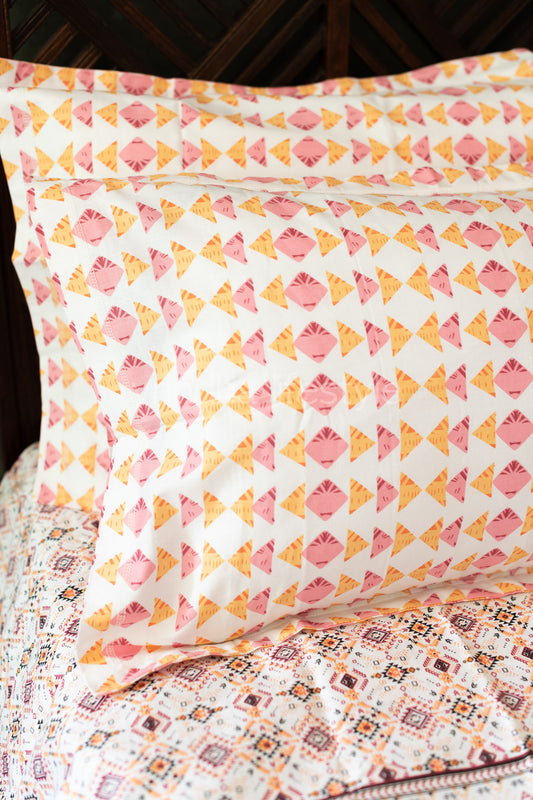 COTTON PERCALE BLOCK PRINTED BEDSHEET SET-Queen size