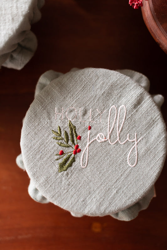 Reversible Fabric bowl / Jar lid covers with embroidery -Set of 3 Small size