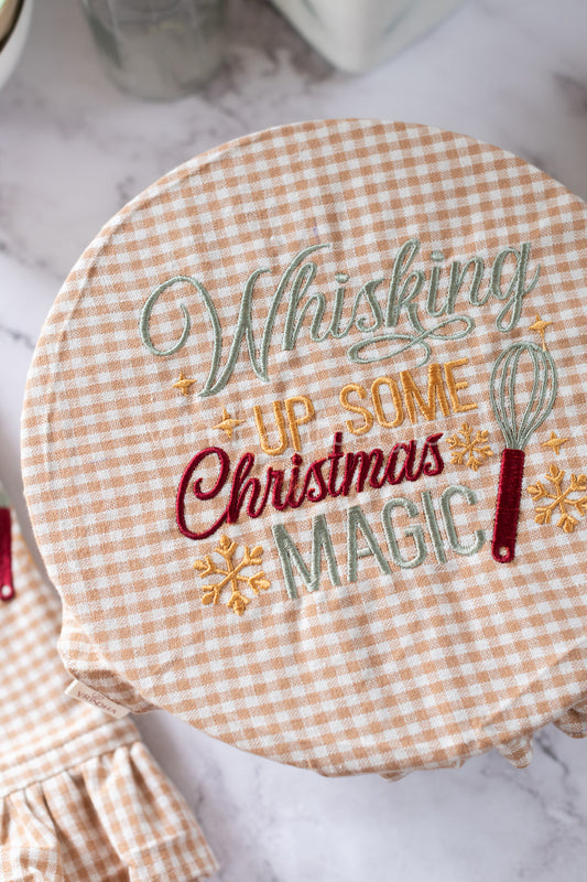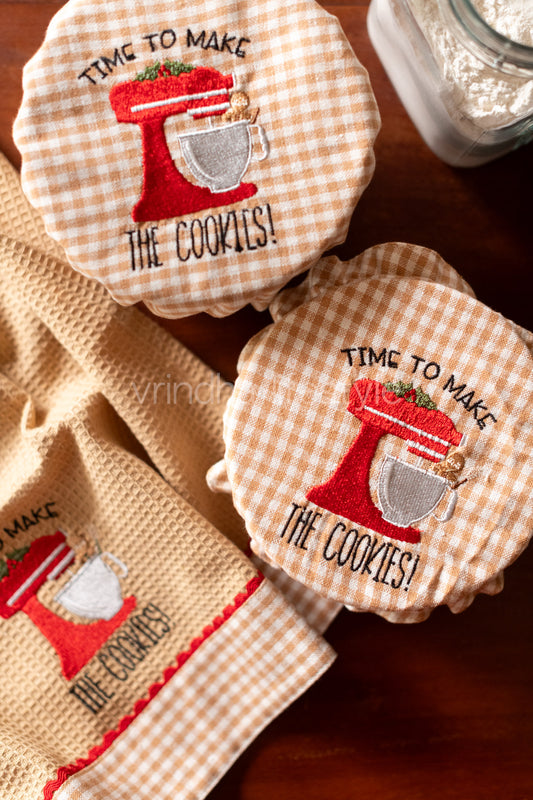 Reversible Fabric bowl covers-Set of 2 (medium and large) with one kitchen towel with embroidery -Bakers 3 pcs gift set