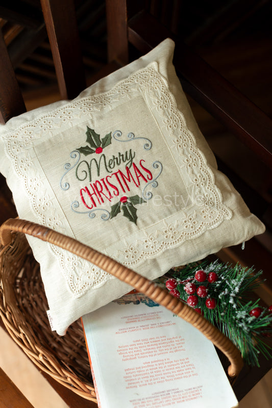 Cotton cushion cover with embroidery and lace detailing -Single unit- 16x16 inches( Customisable)