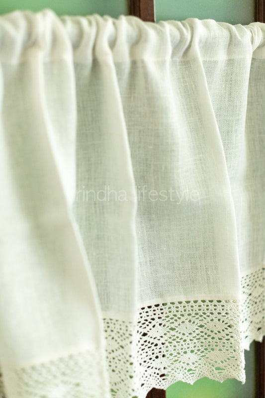 KITCHEN VALANCE-pure linen with lace detailing (customisable )