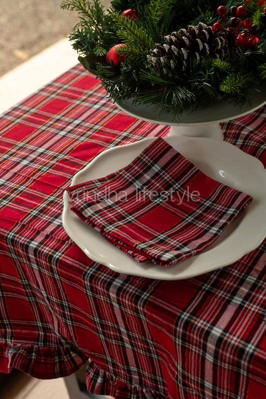 Cotton woven table cover with frill detailing-6 seater
