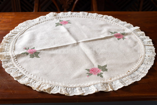Coffee table cover with cross stitch embroidery and lace detailingRegular price Rs. 1,090.00Regular priceUnit price perRs. 1,190.00Sale price Rs. 1,090.00Sale