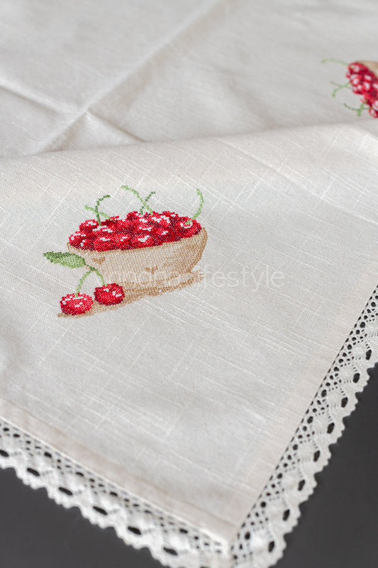 COTTON TABLE CLOTH with cross stitch embroidery -Square -coffee table cover-customisable