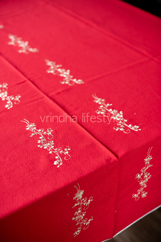 Cotton lurex table cloth with embroidery and lace detailing-8 seater