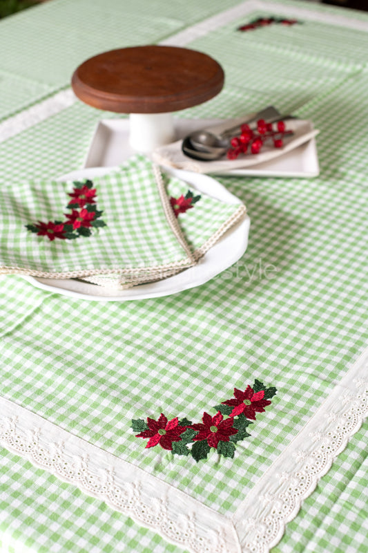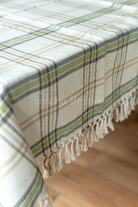 COTTON TABLE CLOTH, checks with lace detailing -6 seater-customisable
